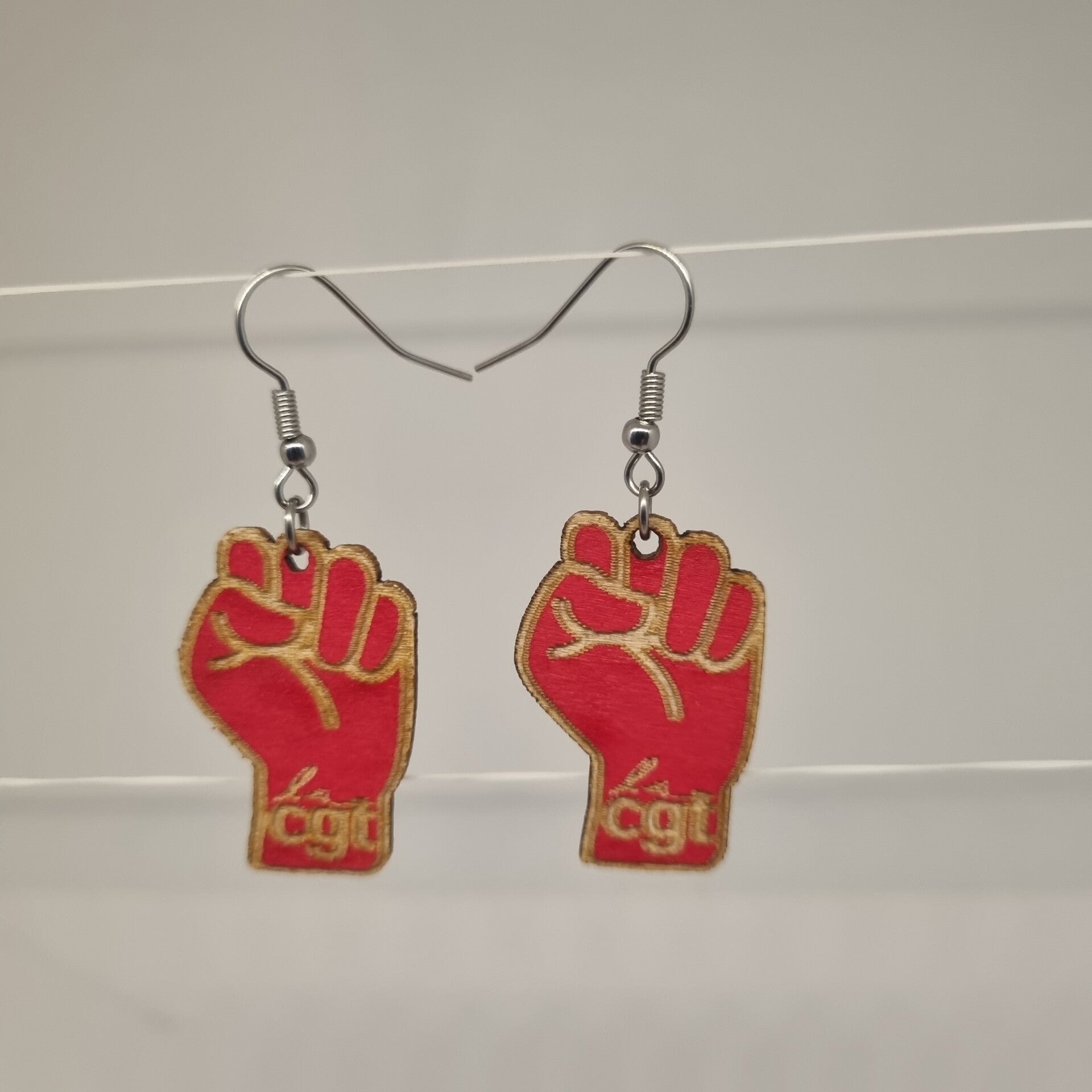 boucles d oreilles bois poing CGT