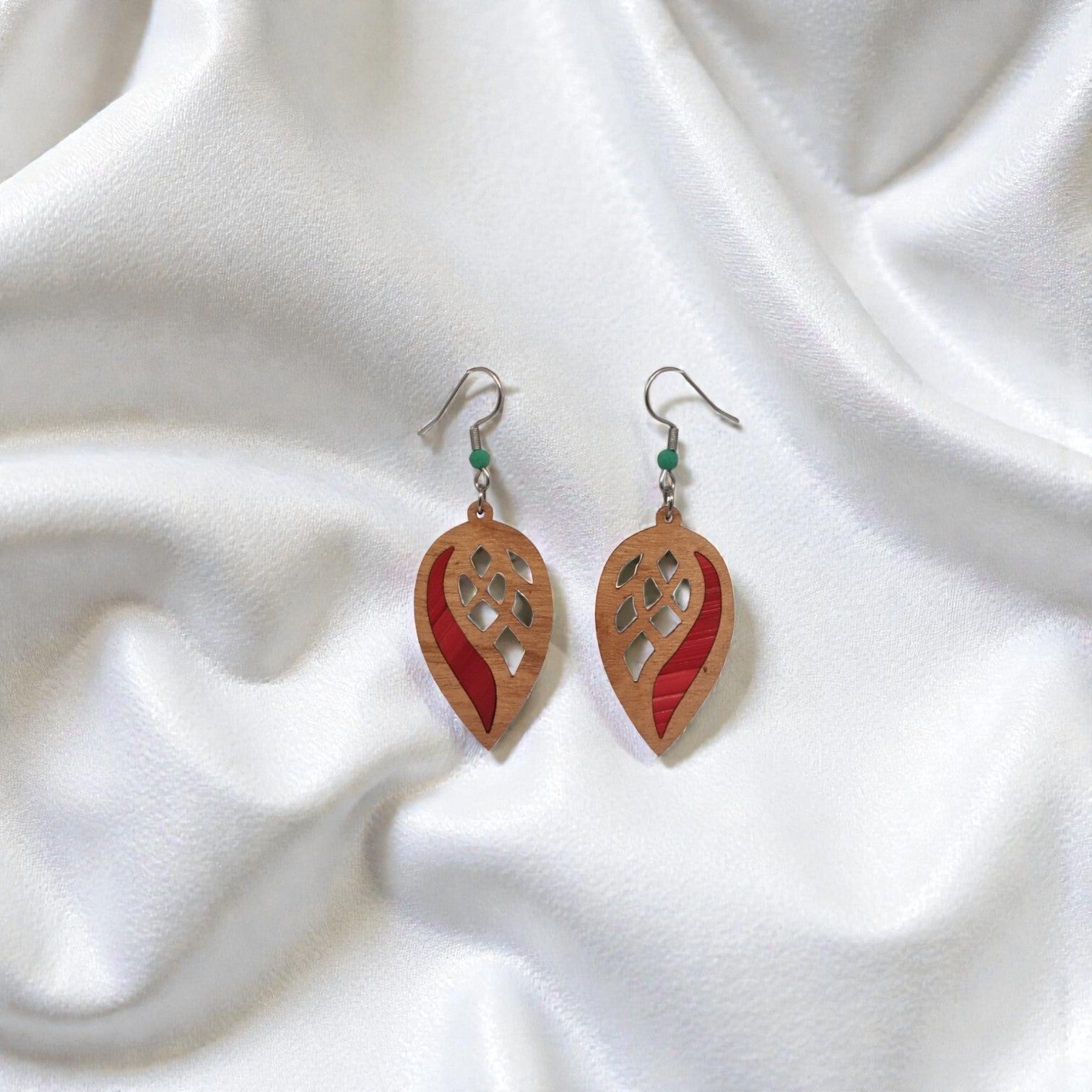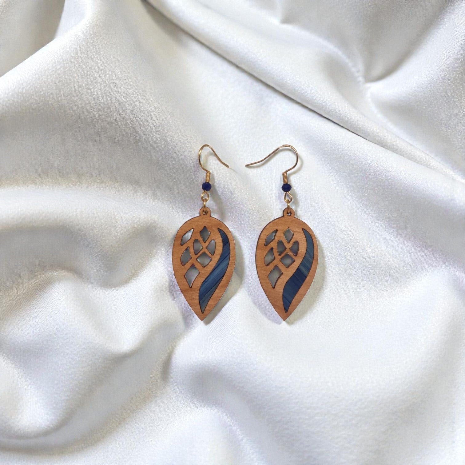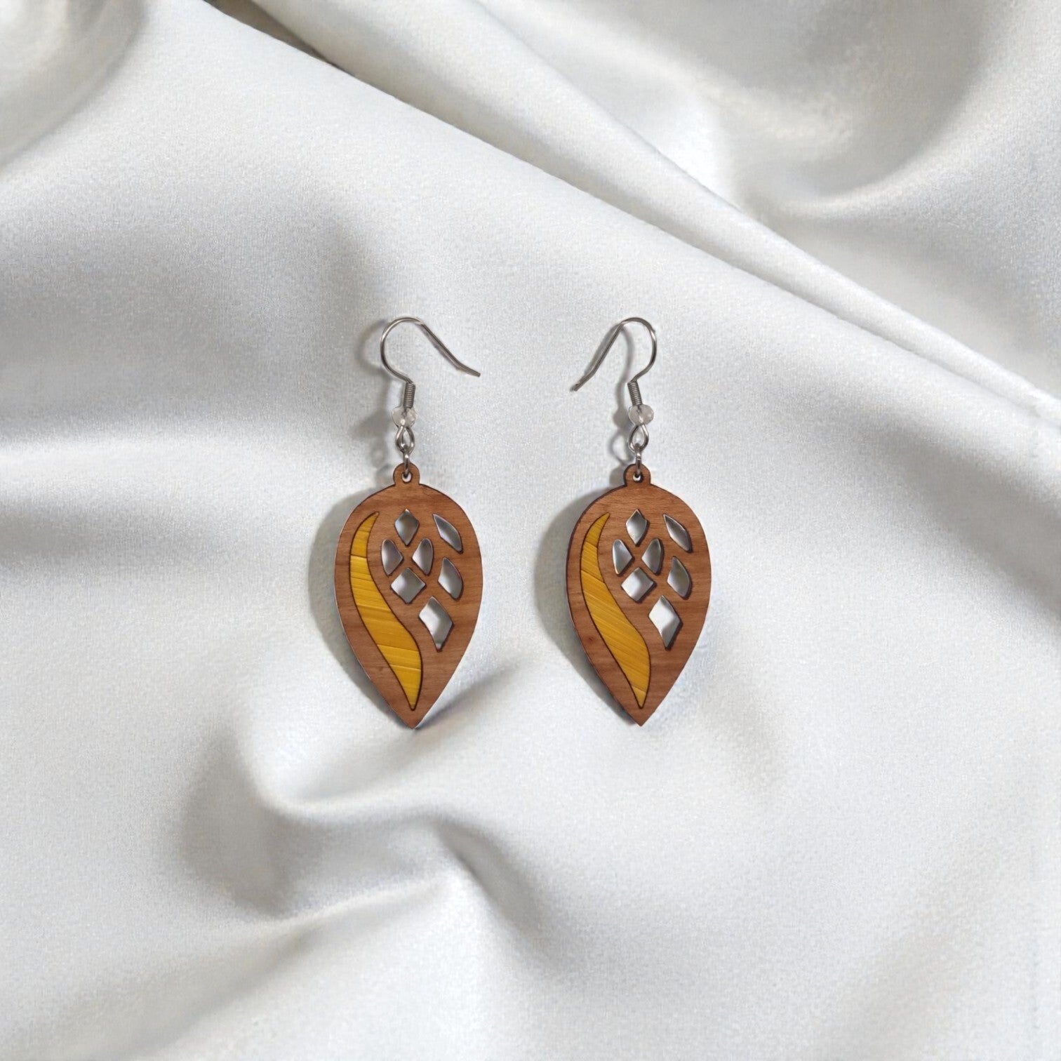 Boucles d’oreilles artisanales en bois de cerisier – marqueterie de paille de seigle