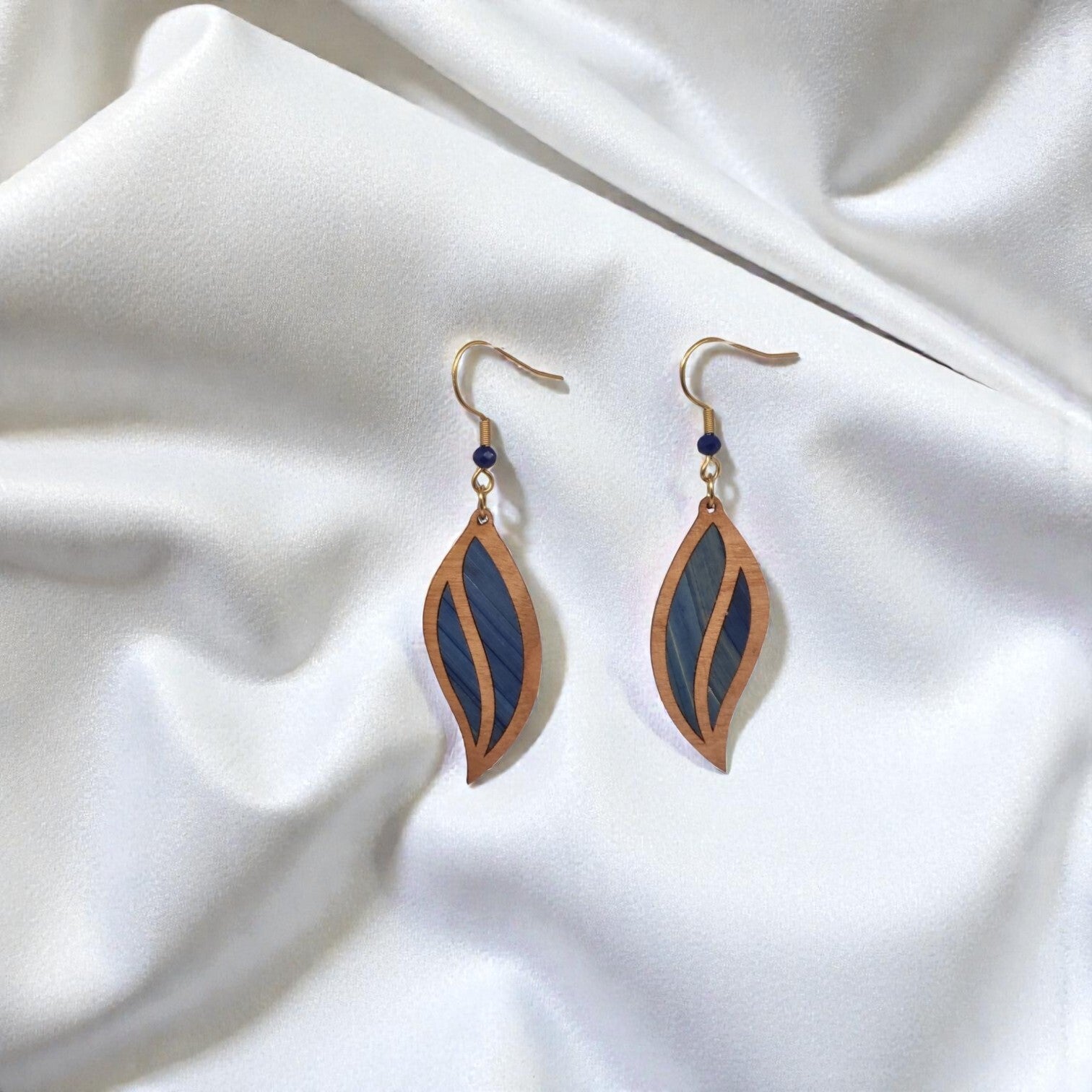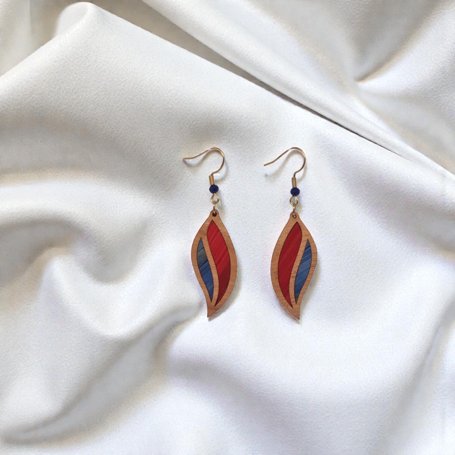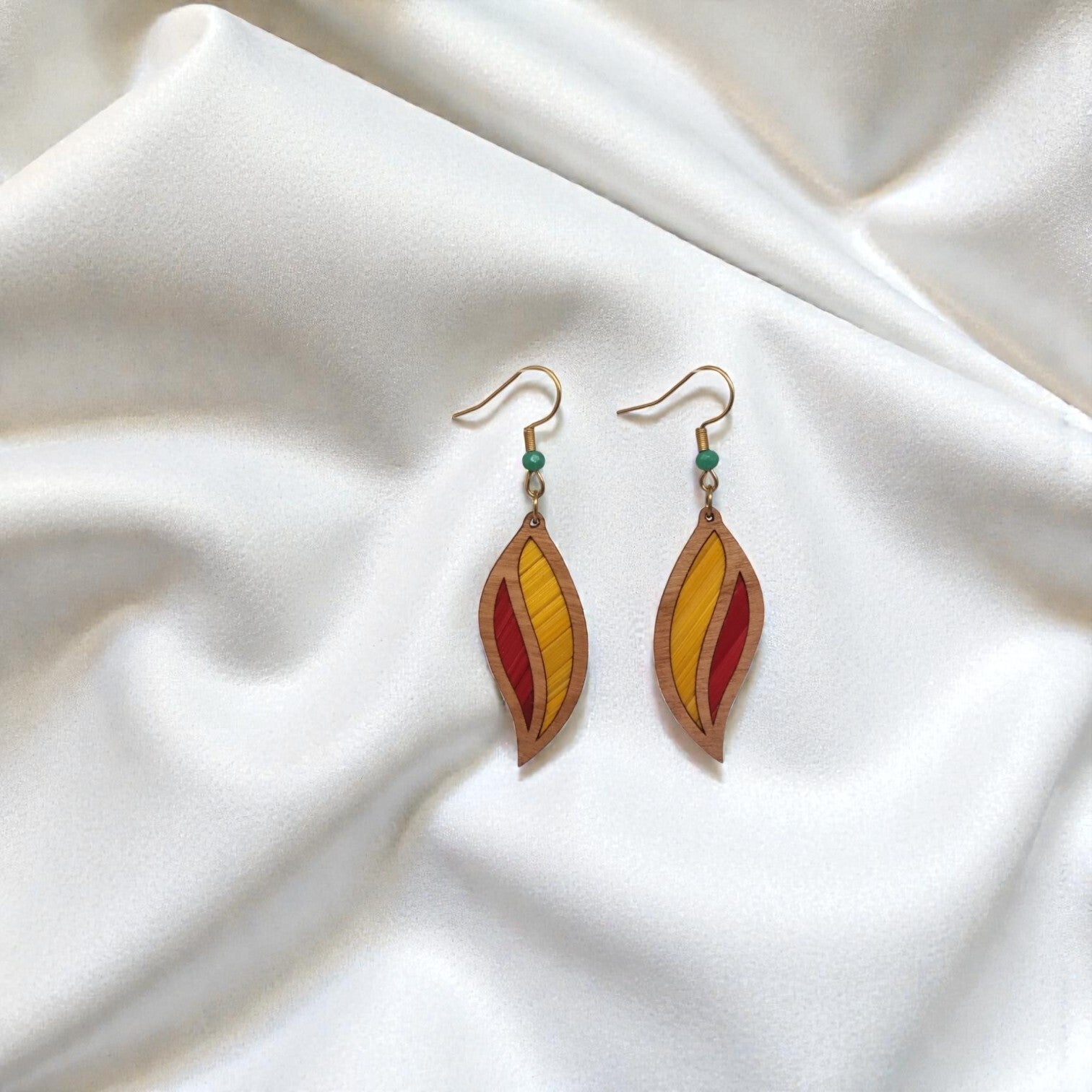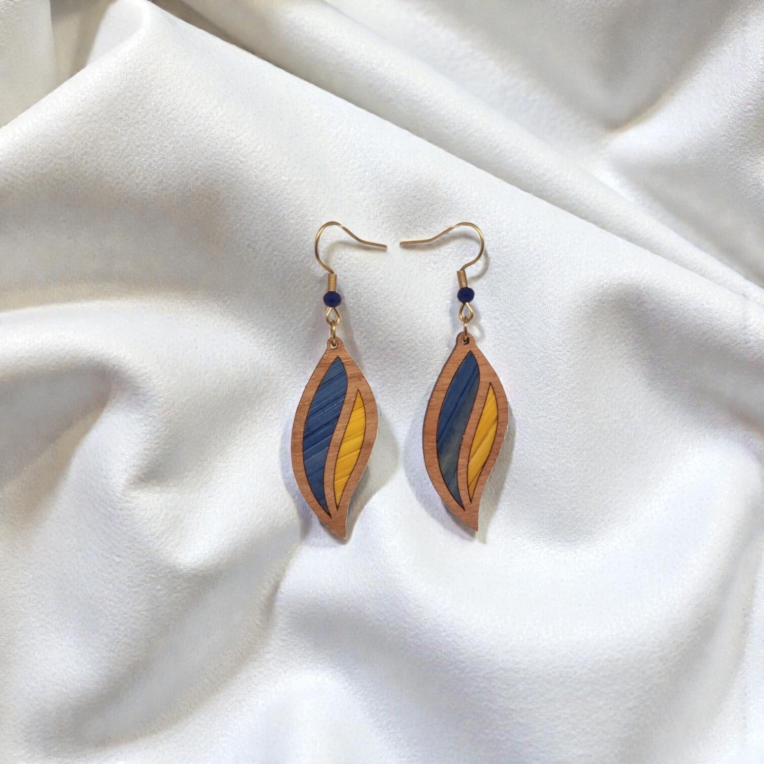 Boucles d’oreilles artisanales en bois de cerisier – marqueterie de paille de seigle