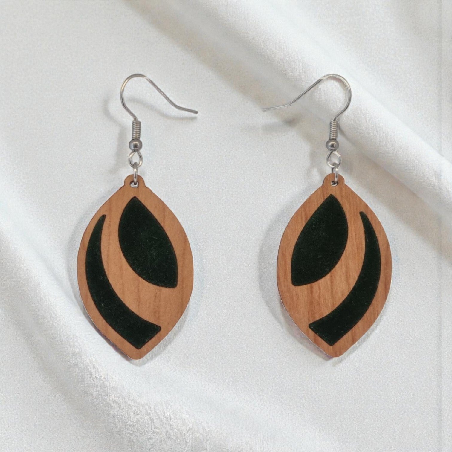 Boucles d’oreilles Éclipse Signature – Feutrine verte & bois de merisier