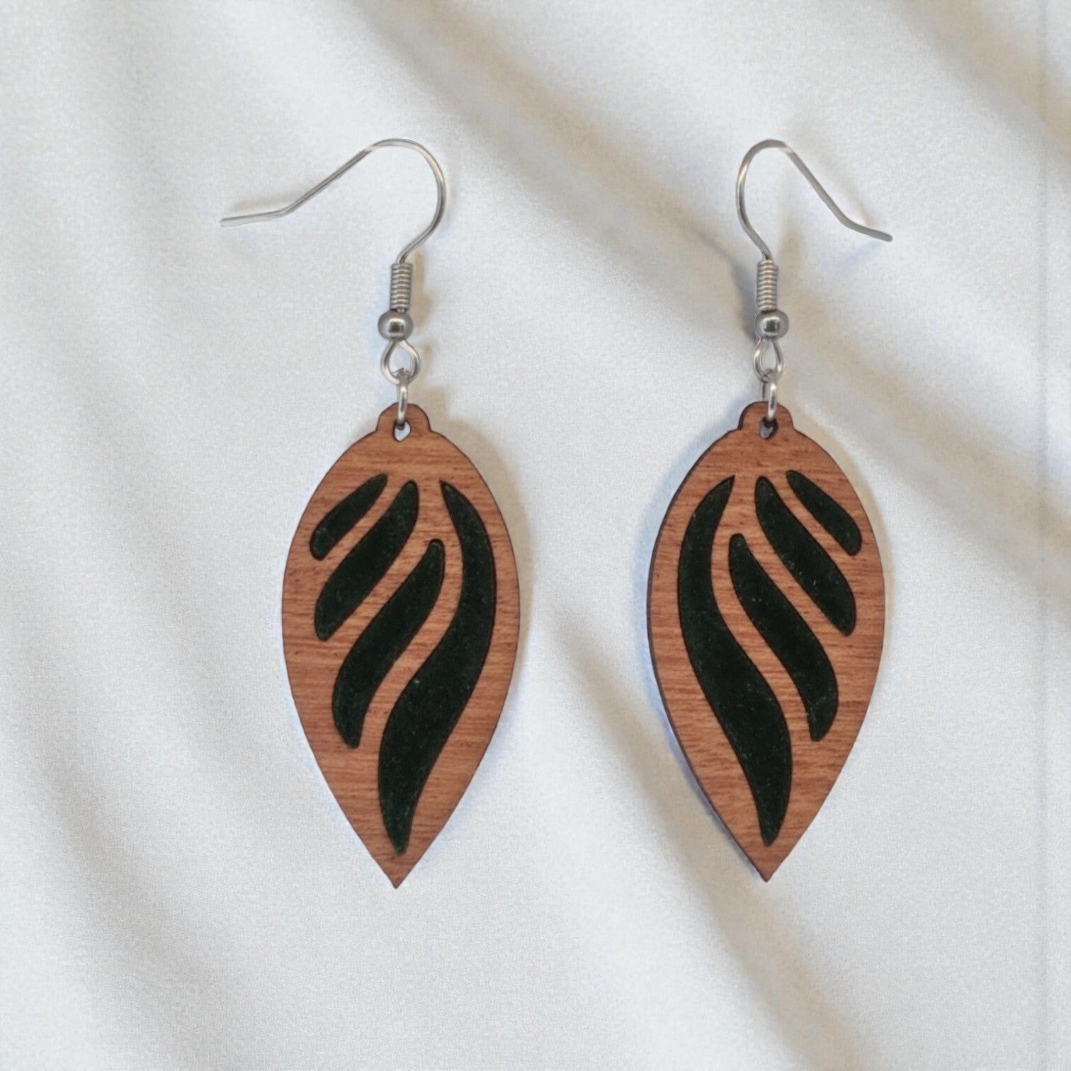 Boucles d’oreilles Éclipse Sylve – Feutrine verte & bois d’acajou